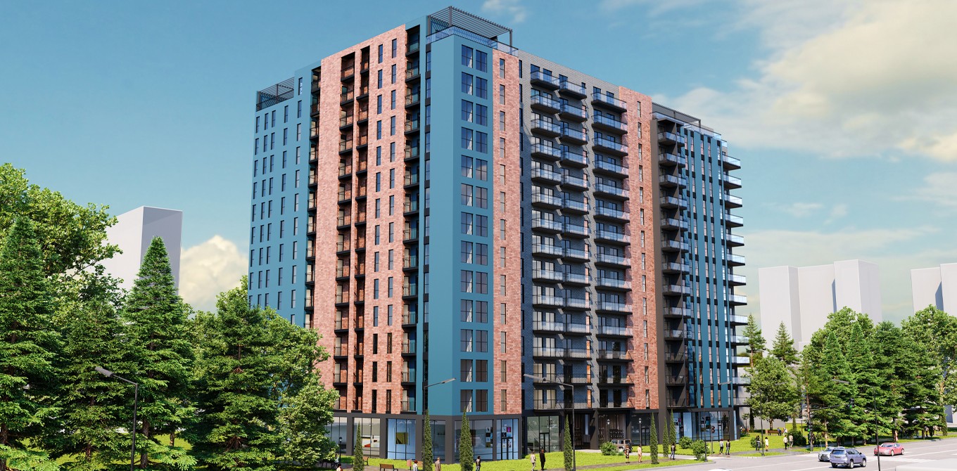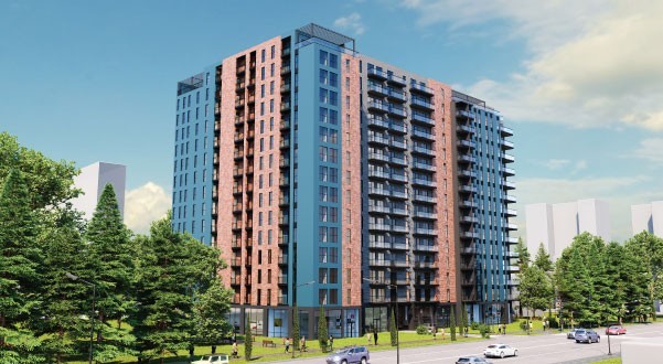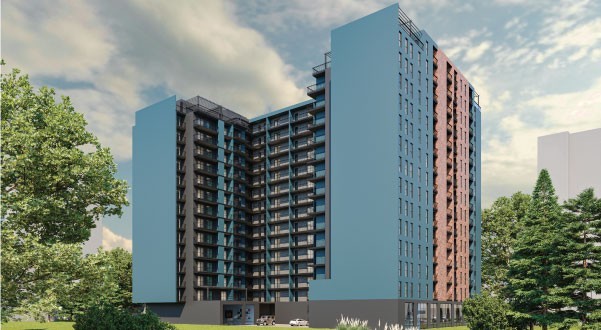 This 15-story building will feature 307 apartments for residents, along with diverse commercial and office areas.