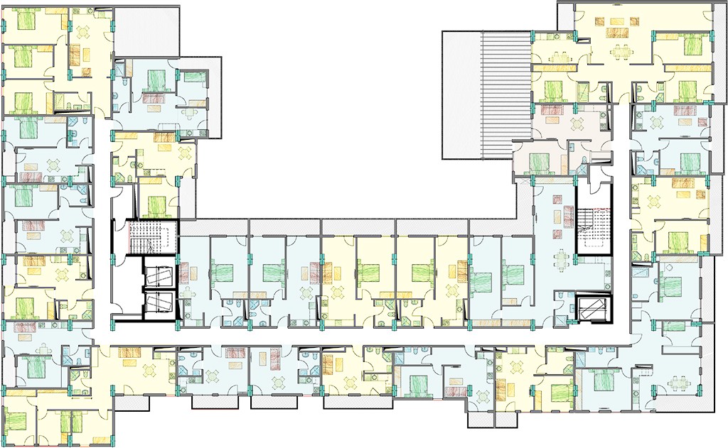 The outer and inner walls of the apartment buildings are constructed with energy-efficient YTONG building blocks. Walls built with this material keeps consistent room temperature and provides sound insulation.