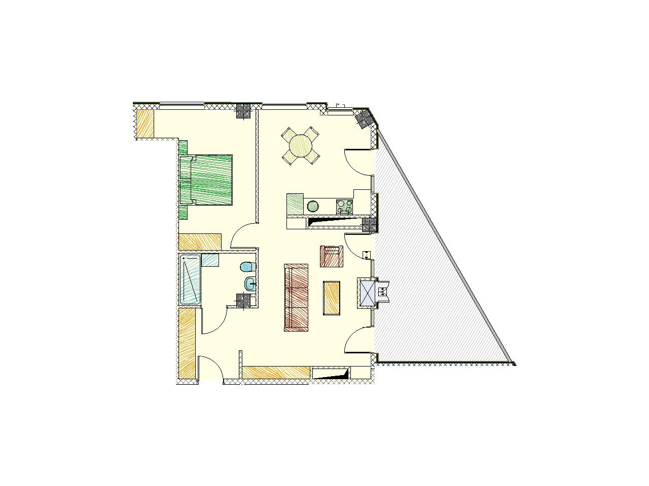 Future residents' demands are taken into account when designing the residential area. The apartments are made for young families, renters, students, or large families. Apartment living spaces begin at 53 sq.m.