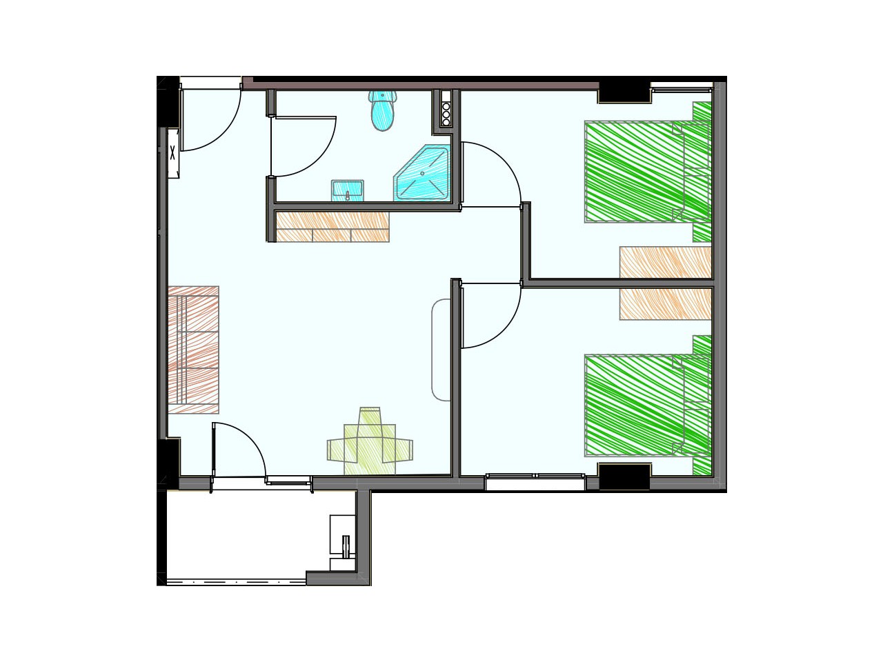 • 2 საძინებელი - 10.8 მ²
