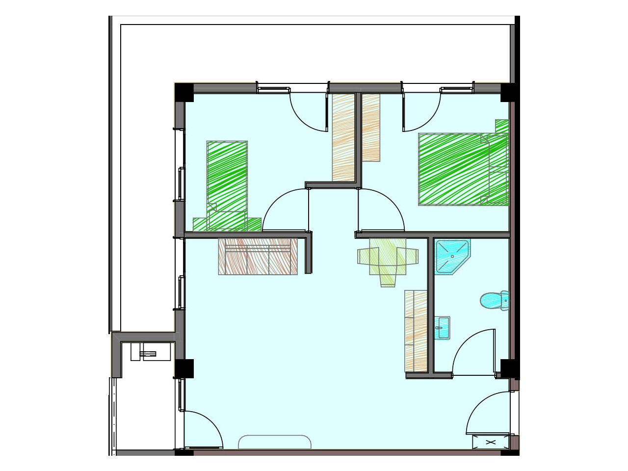 • 2 საძინებელი - 10.9 მ²