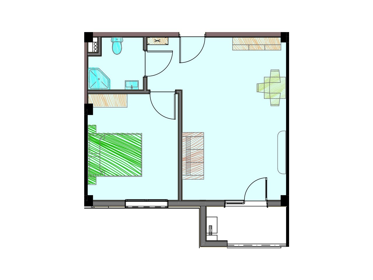 • 1 საძინებელი - 13.9 მ²