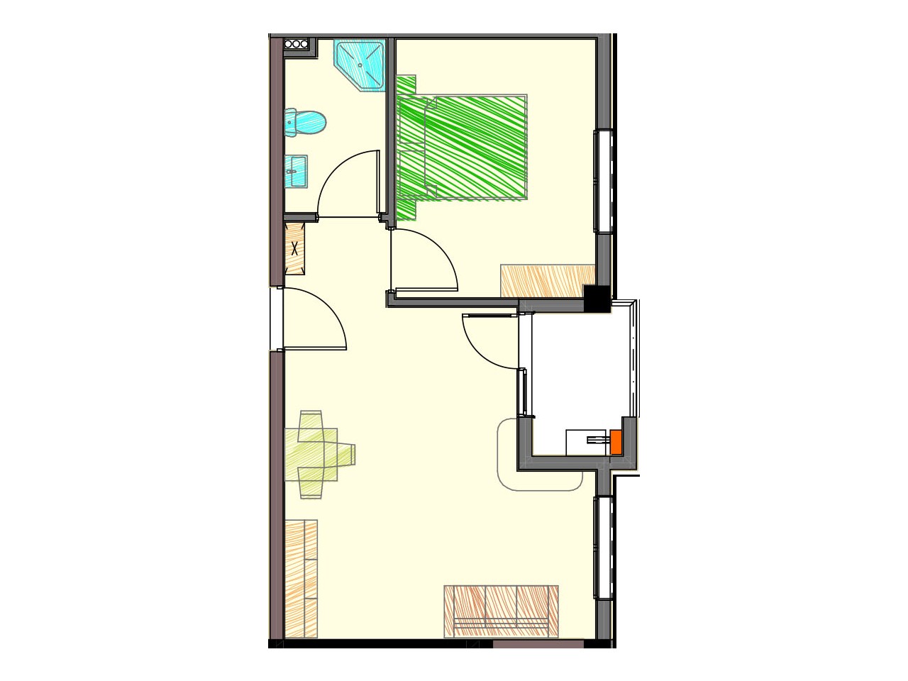 • 1 საძინებელი - 12.7 მ²