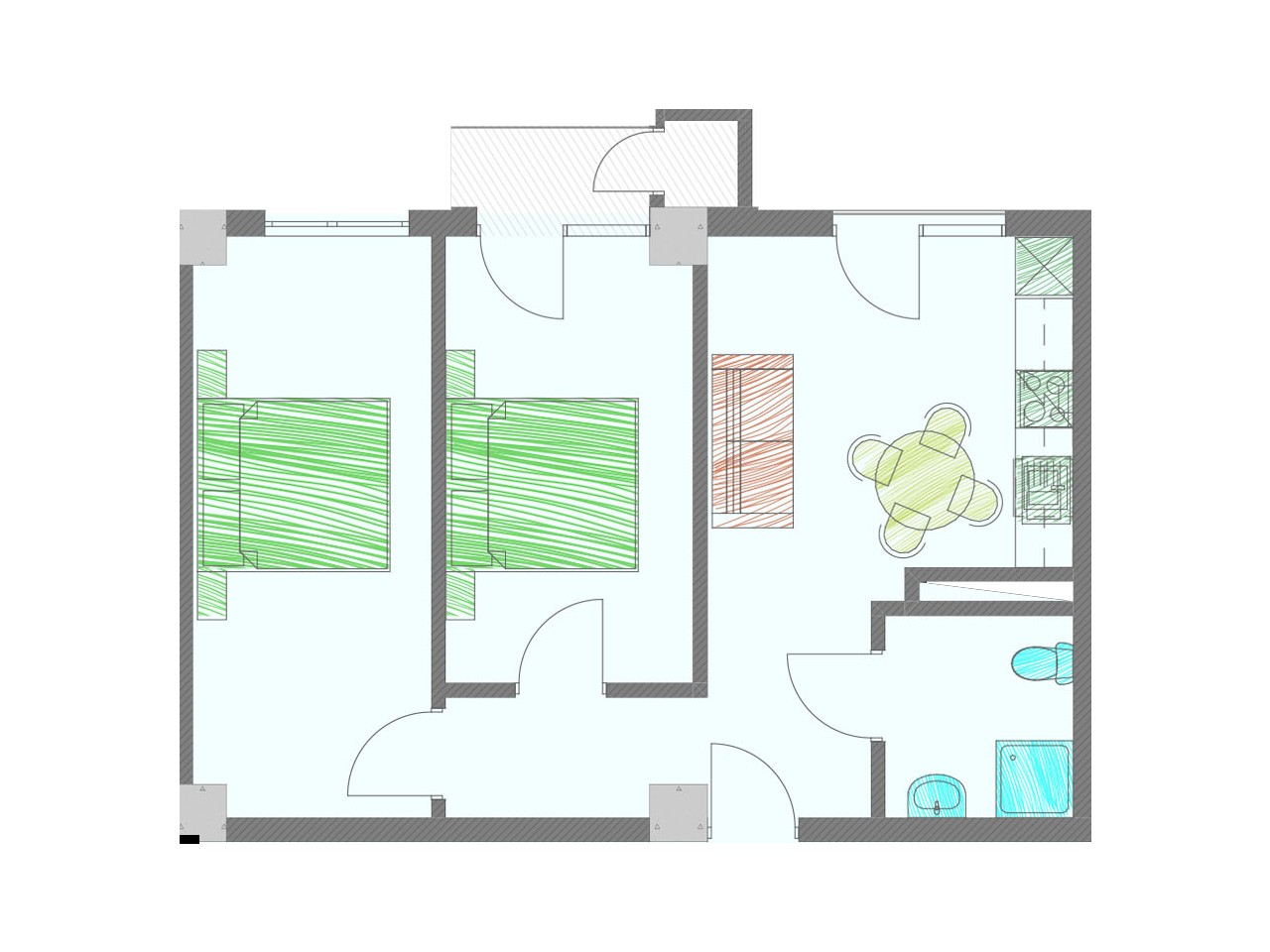 • 1 საძინებელი - 15.2 მ²