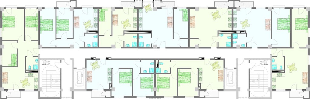 ბინები სხვადასხვა საჭიროებებზეა მორგებული:  ახალი, დიდი და პატარა ოჯახებისთვის, გასაქირავებლად თუ სტუდენტებისთვის.ახალი კორპუსი 10 სართულიანია, ადაპტირებული და აღჭურვილი სახანძრო სისტემებით.
