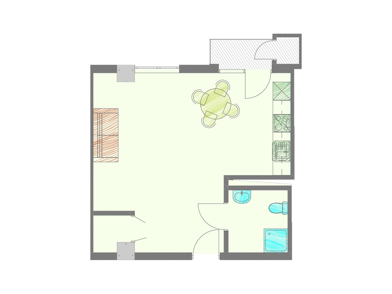 • 1 სველი წერტილი - 4.4 მ²